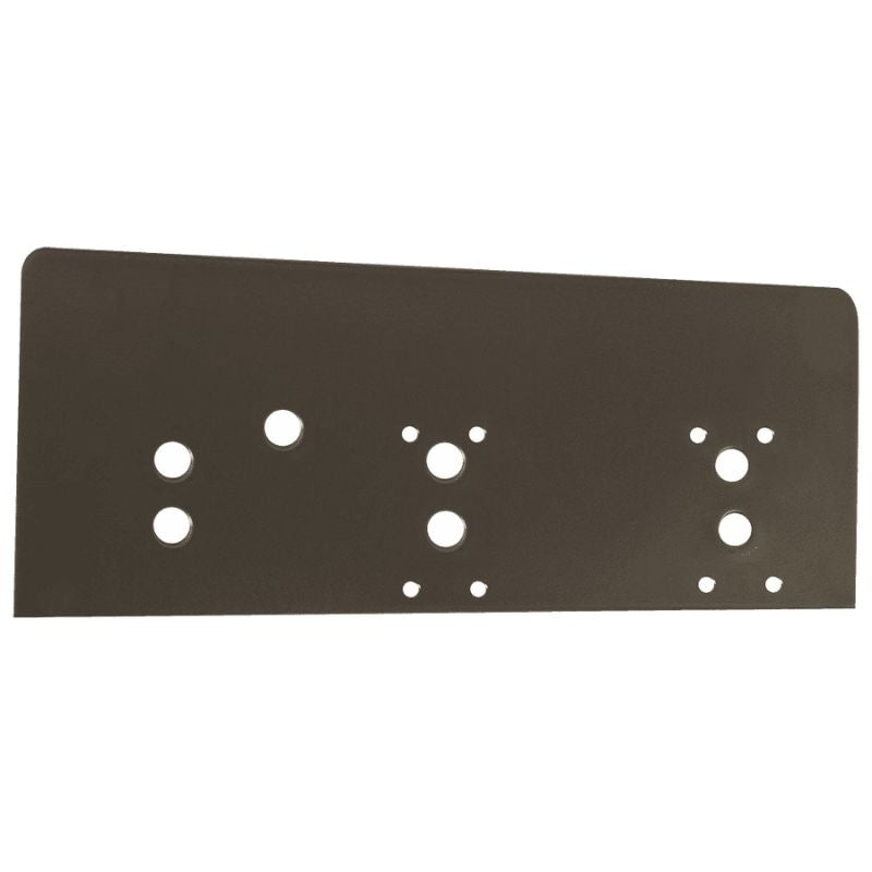 The LCN 6440-18TJ-695 Drop Plate is designed for top jamb applications, measuring 12-9/32 inches by 7-1/16 inches by 3/16 inches. It boasts a dark bronze painted finish, adding a touch of elegance to any door frame.